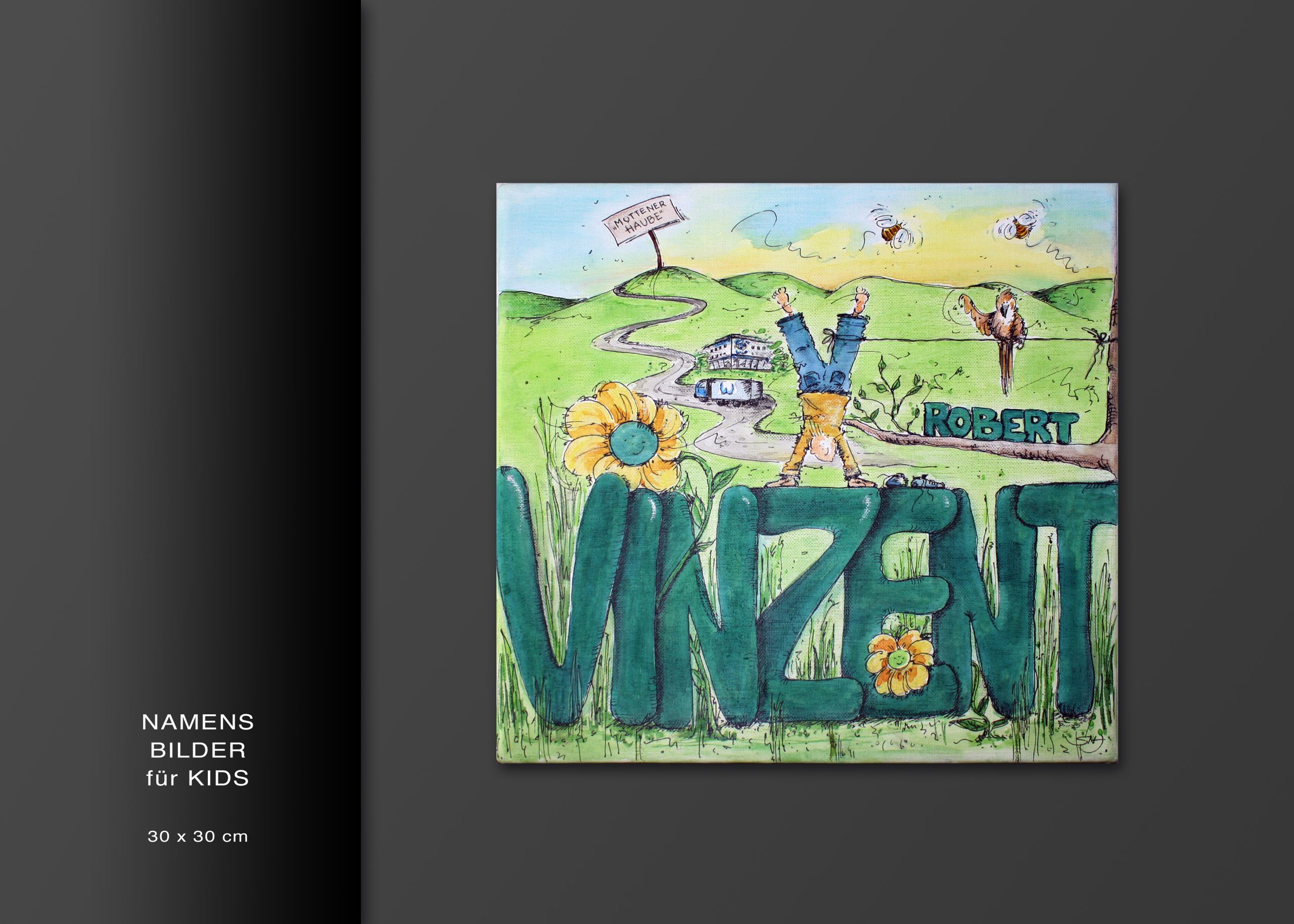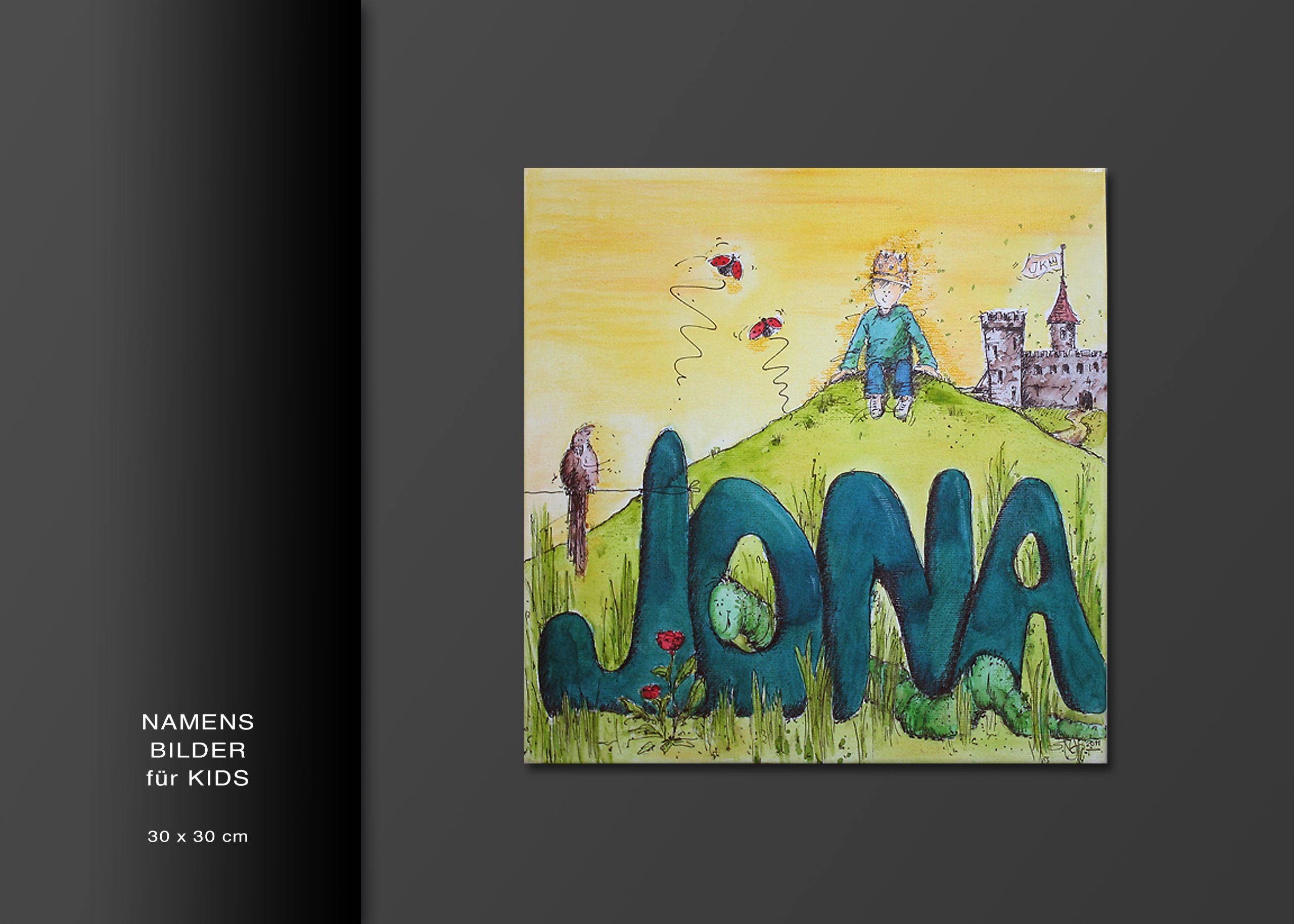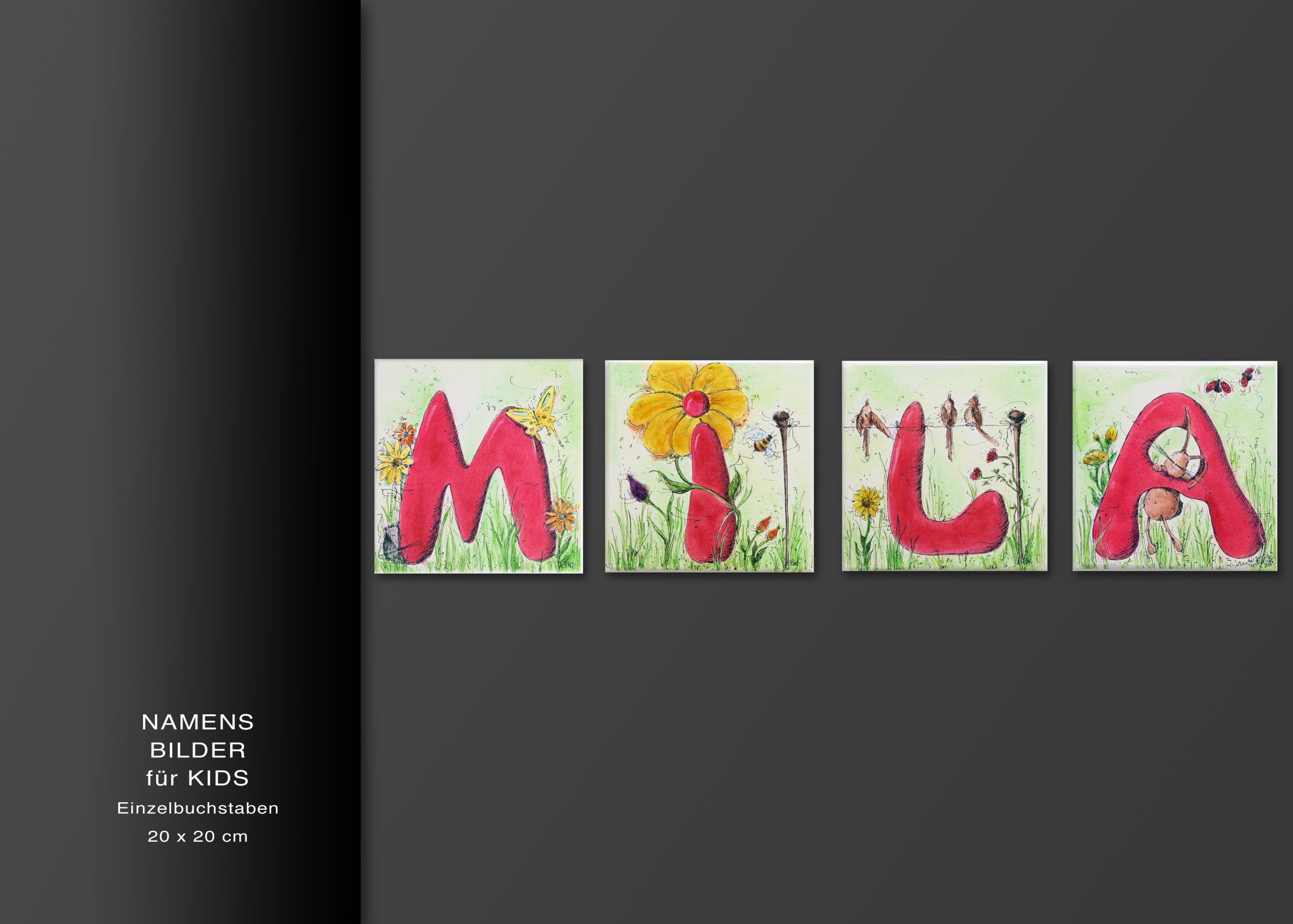 Wenn’s mal etwas Besonderes sein soll: Vielleicht ein individuelles Geschenk zur Geburt oder zur Taufe – ein Namensbild oder eine Zeichnung fürs Kinderzimmer … als Auftragsmalerei, nach Ihren Farb- und Motivwünschen.