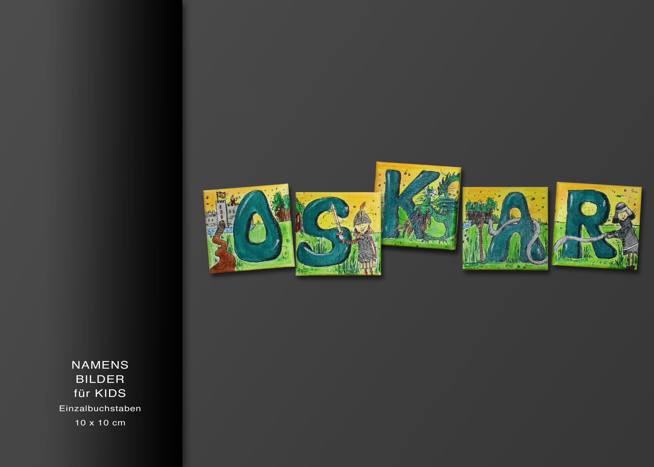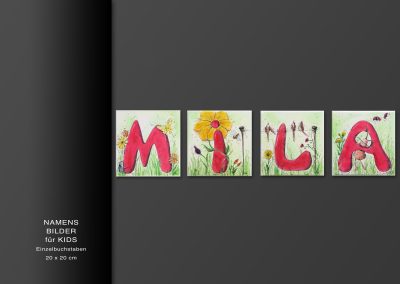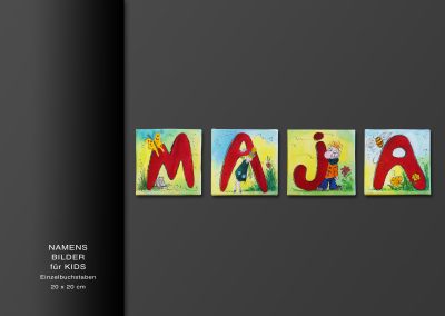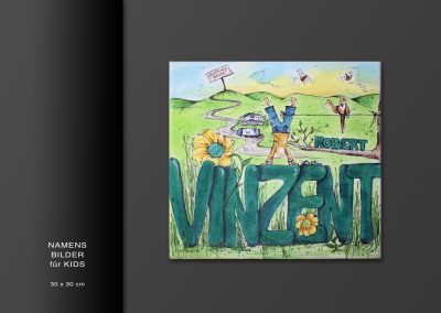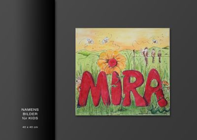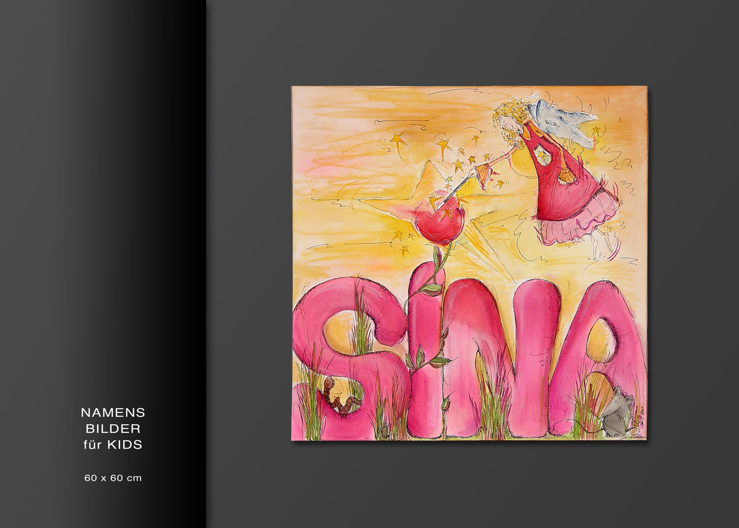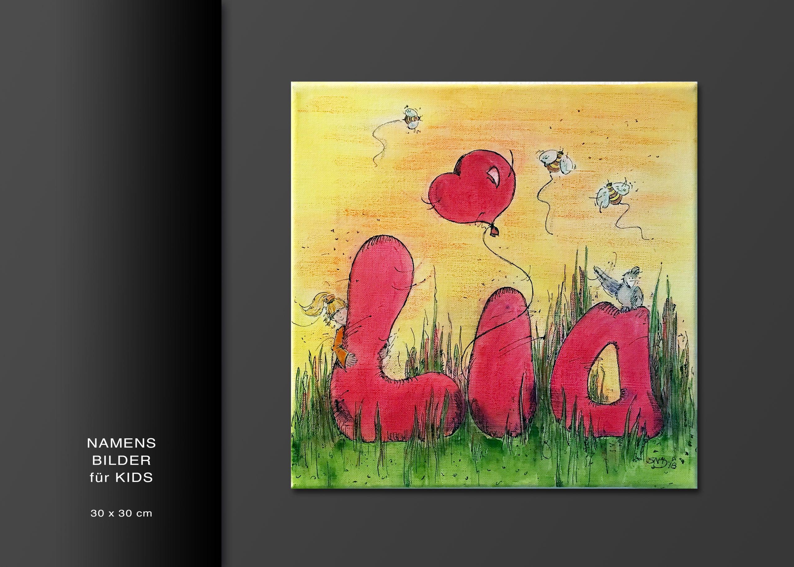 Wenn’s mal etwas Besonderes sein soll: Vielleicht ein individuelles Geschenk zur Geburt oder zur Taufe – ein Namensbild oder eine Zeichnung fürs Kinderzimmer … als Auftragsmalerei, nach Ihren Farb- und Motivwünschen.